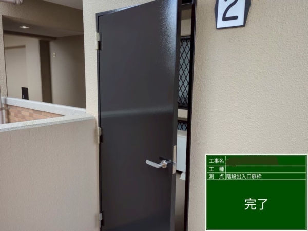 東区マンション鉄部塗装工事【階段出入口扉枠編】 こんにちは。株式会社MKクリエイトです。 今回は、東区マンション鉄部塗装工事【階段出入口扉枠編】を ご紹介させていただきます!(^^)! 階段出入口扉枠の施工完了しました。 塗装工事のことでしたら、福岡市東区を拠点とします株式会社MKクリエイトを よろしくお願いいたします。 最後まで閲覧頂きありがとうございます。 2025/10/09 11:52ブログ Tweet